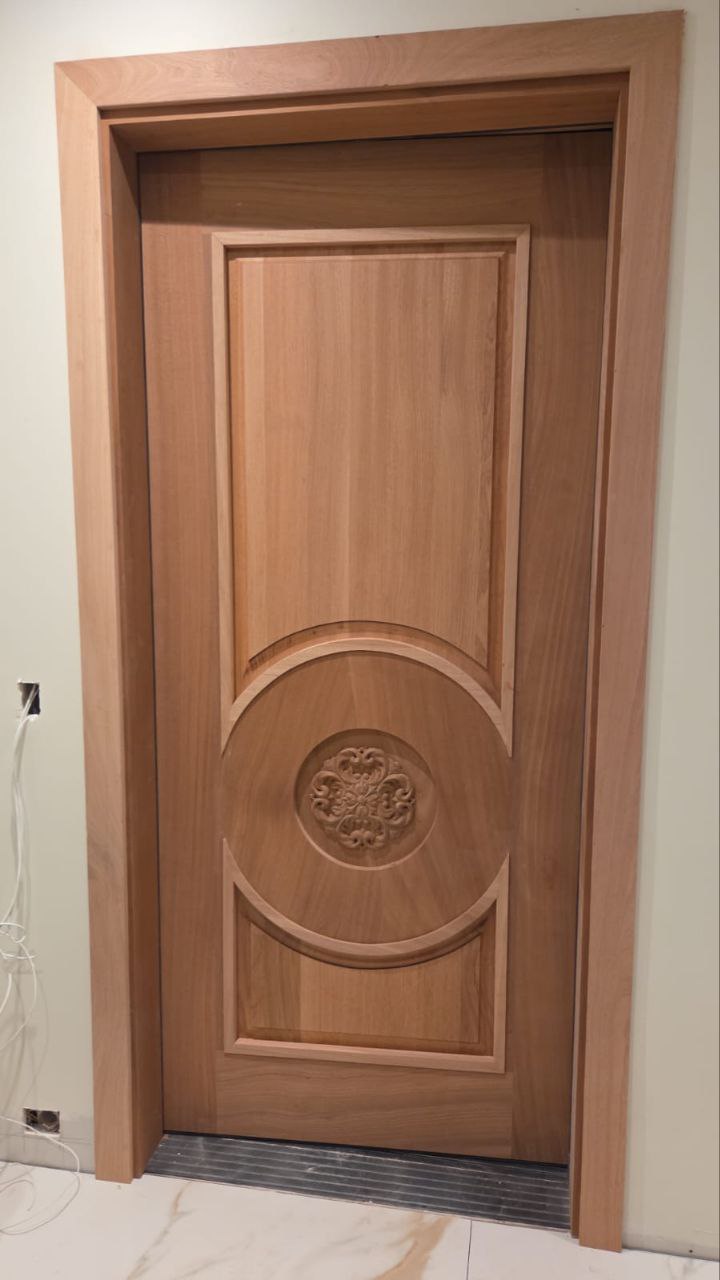 The selected wood is cut to the right size and carefully dried to remove excess moisture. This step helps prevent warping, cracking, or shrinking over time. The wood is then treated to improve its strength and protect it from humidity, temperature changes, and daily wear, creating a solid base for your custom door.